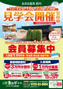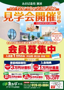 このたび山形市内にある 4つのあおば斎苑(鈴川・上町・瀬波・松山) で、12月に見学会を開催いたします。