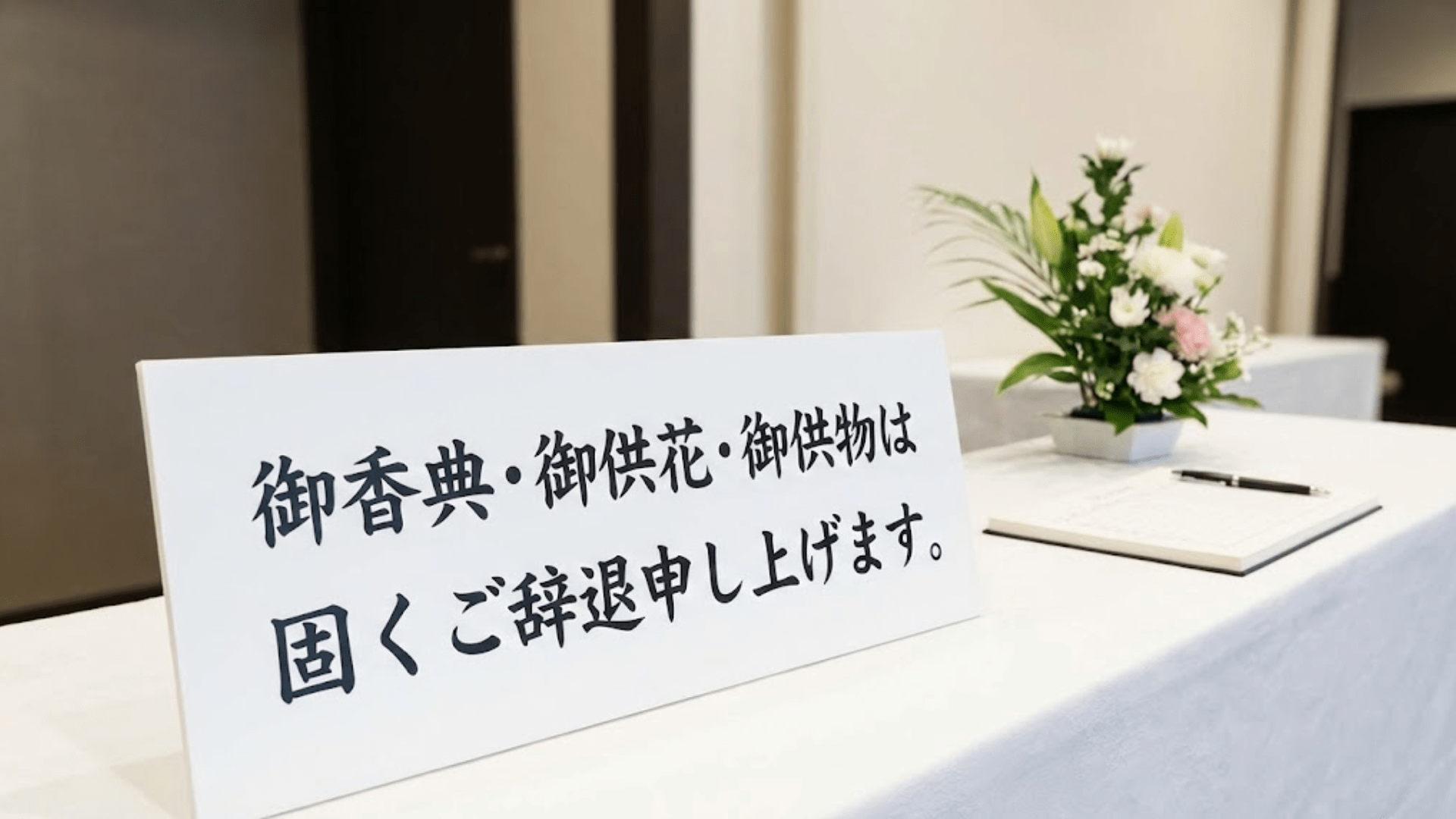 すべて辞退する(推奨): 参列だけでなく、香典・供花・供物などのお受け取りもすべてお断りします。 ご遺族にとっては「香典返し」の手配などの負担がなくなり、最も静かにお見送りができる形式です。