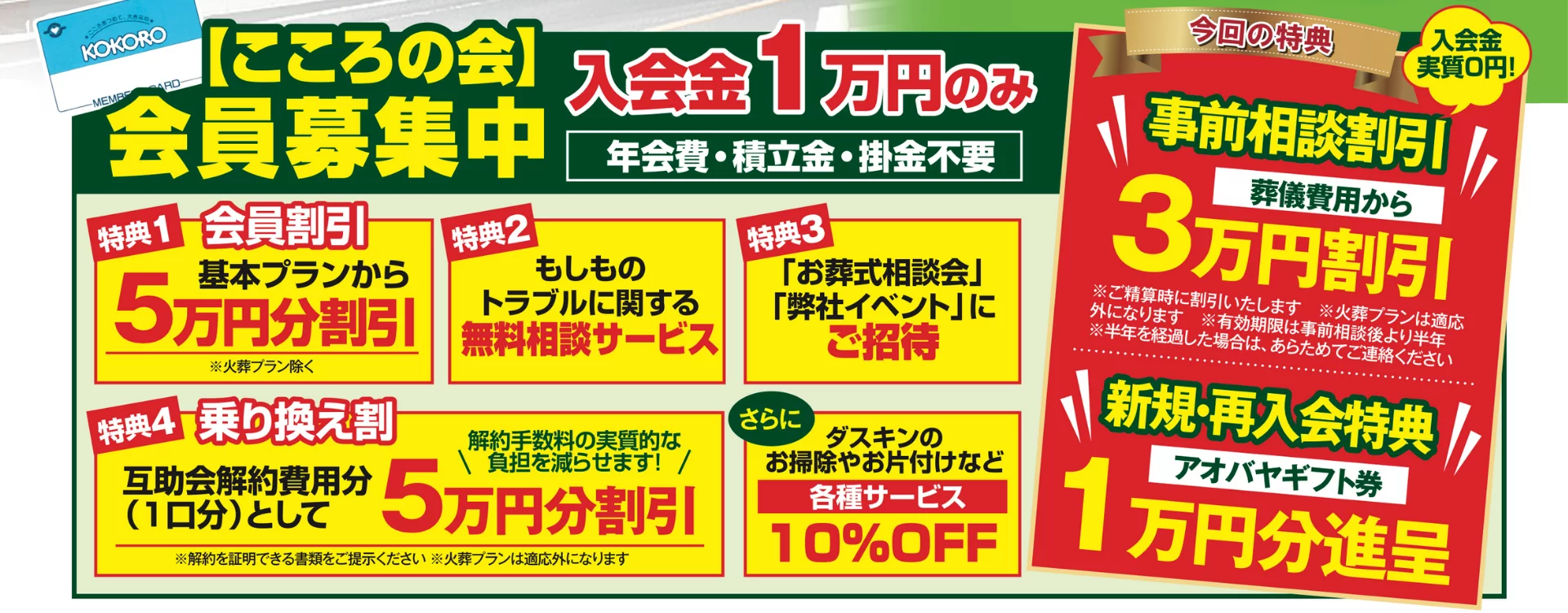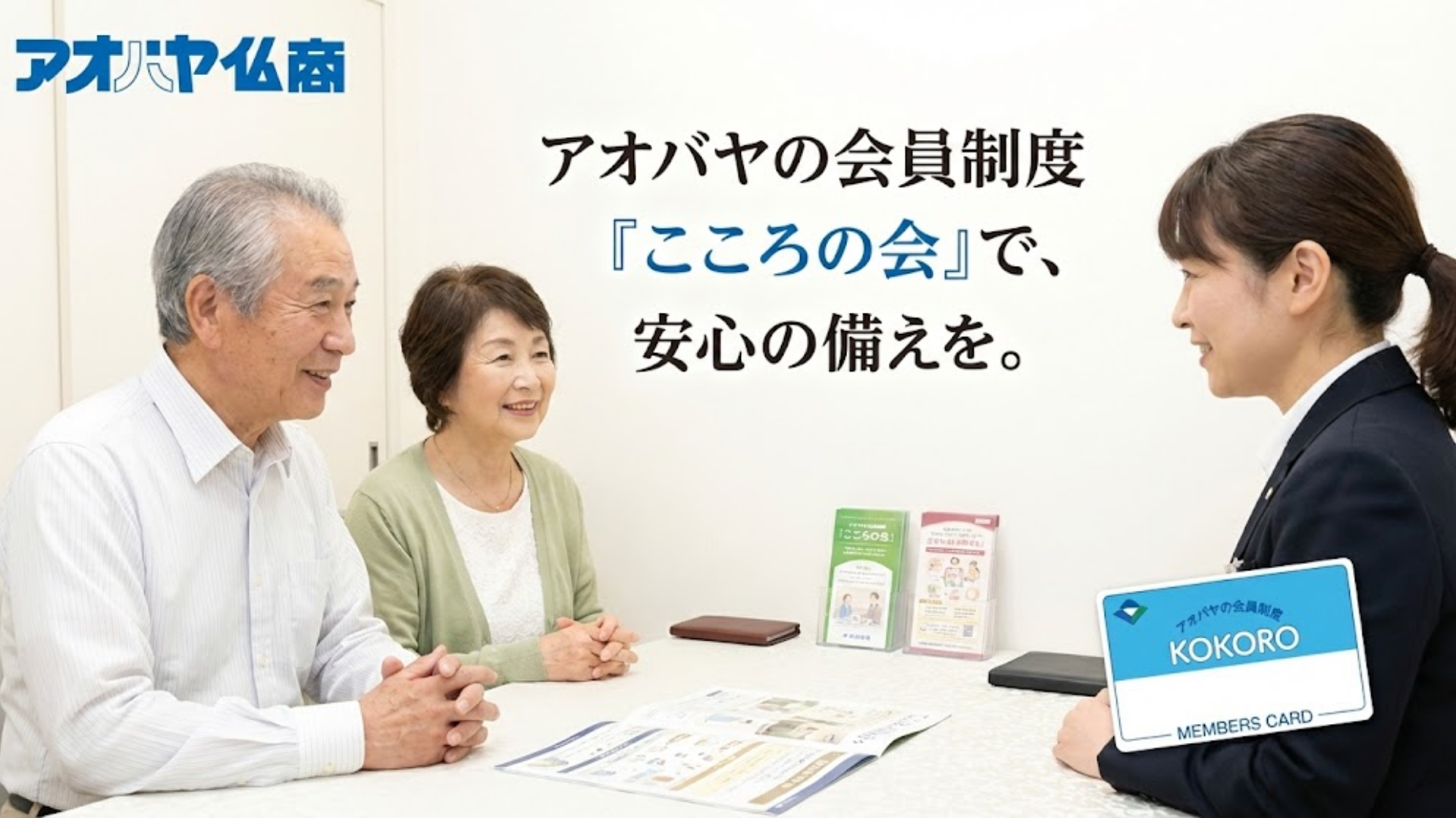 葬儀の費用負担を減らし、ご家族が安心してお見送りをするための賢い選択。それが、アオバヤ仏商の会員制度『こころの会』です。