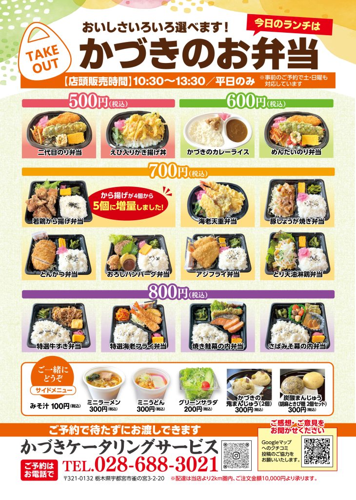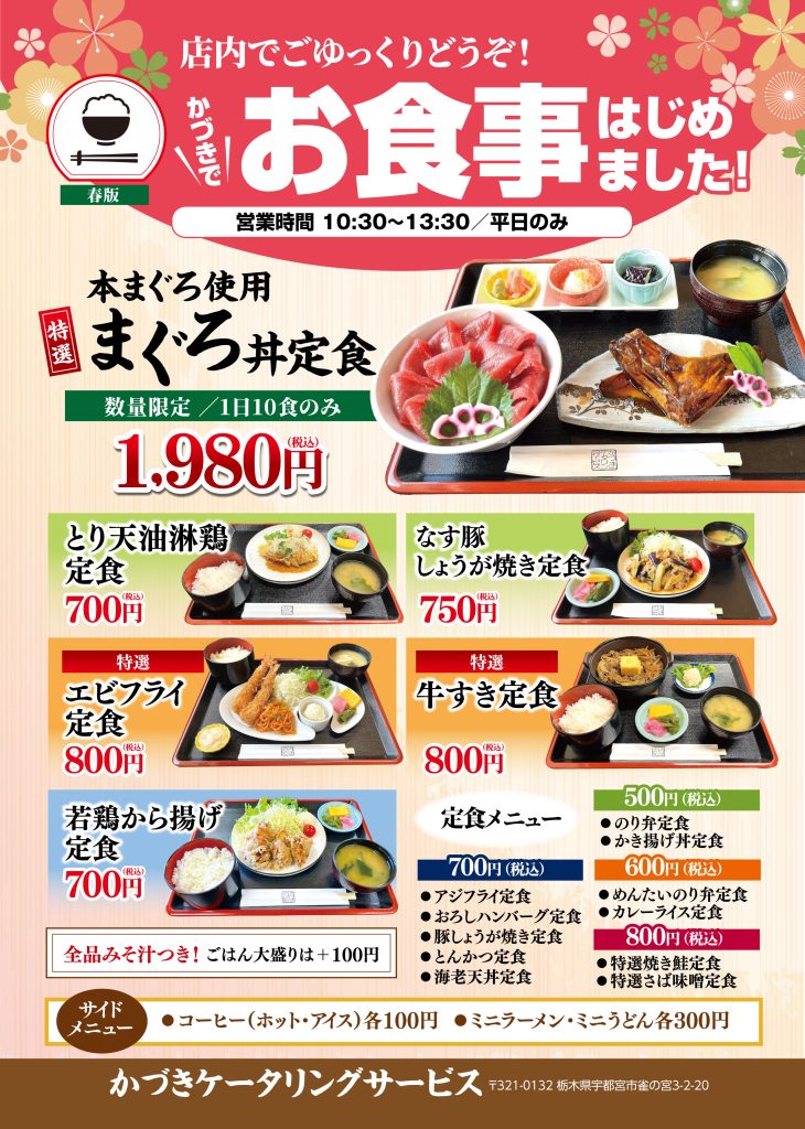 平日は店内でのお食事とお弁当の販売を行なっております。